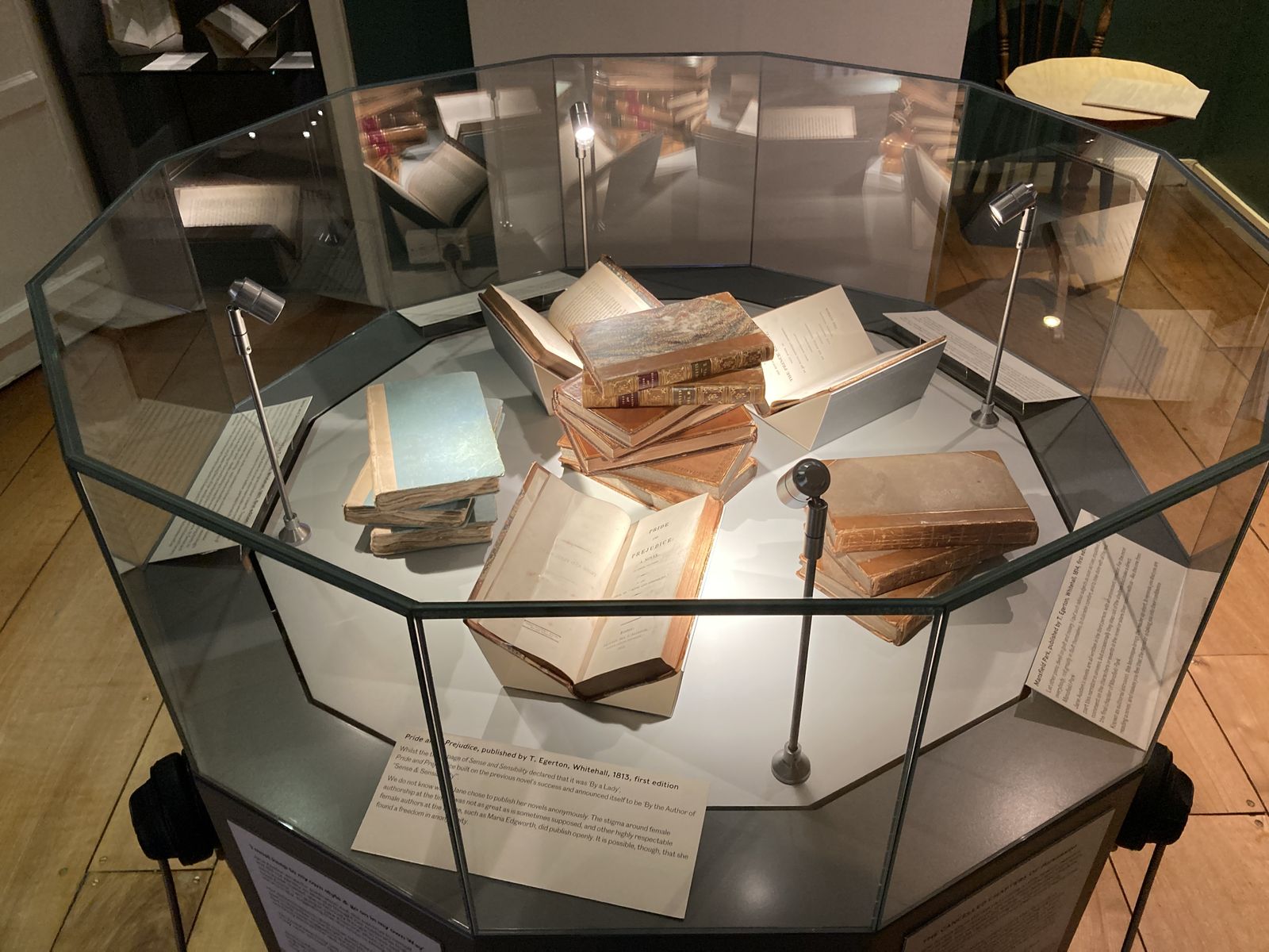 First-edition Jane Austen novels in a special display case at her former home Jane Austen's House