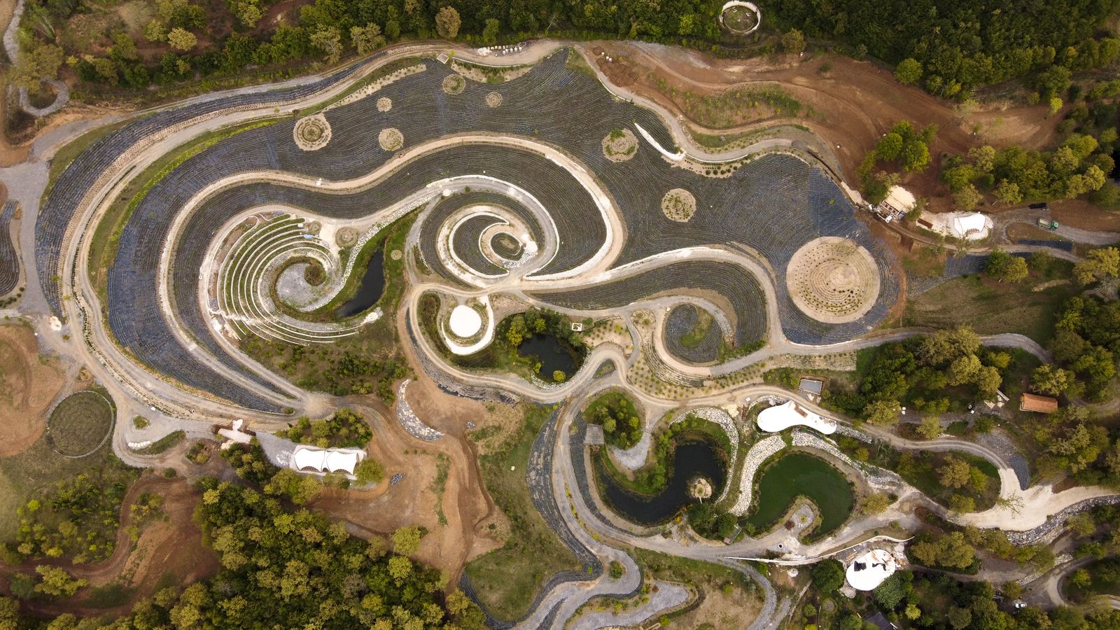 “Construction machinery served as our brushes, and our colors were plants,” he tells Forbes. “Throughout the space, there is not a single straight line.”