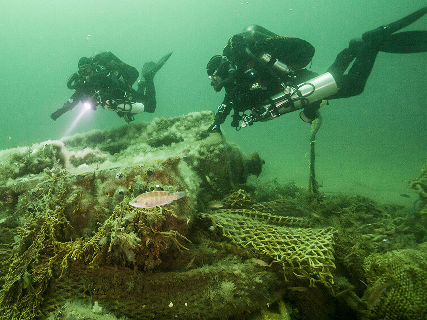 Most captains would obviously want to avoid such a costly and dangerous situation, but the sheer number of nets draped on Stellwagen wrecks indicates that some are willing to risk it. “Every shipwreck that we know about in Stellwagen has some form of impact from fishing gear,” says Pete DeCola, the sanctuary superintendent.