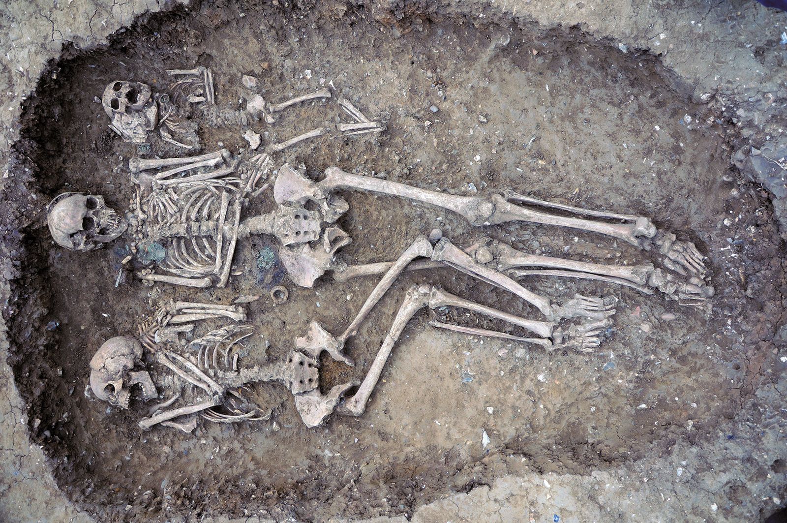 And while Queeny’s burial style suggests she ended her life relatively well-off, her bones tell of a harsh existence. She probably tended crops and perhaps cows. When she died, she might have been as young as 25, and her hands and feet show signs of hard labor. Her stained teeth suggest she may have used them for softening leather. Most tragically, she probably died in childbirth: The tiny bones of a fetus are lodged sideways in her pelvic area, unable to pass through the birth canal.