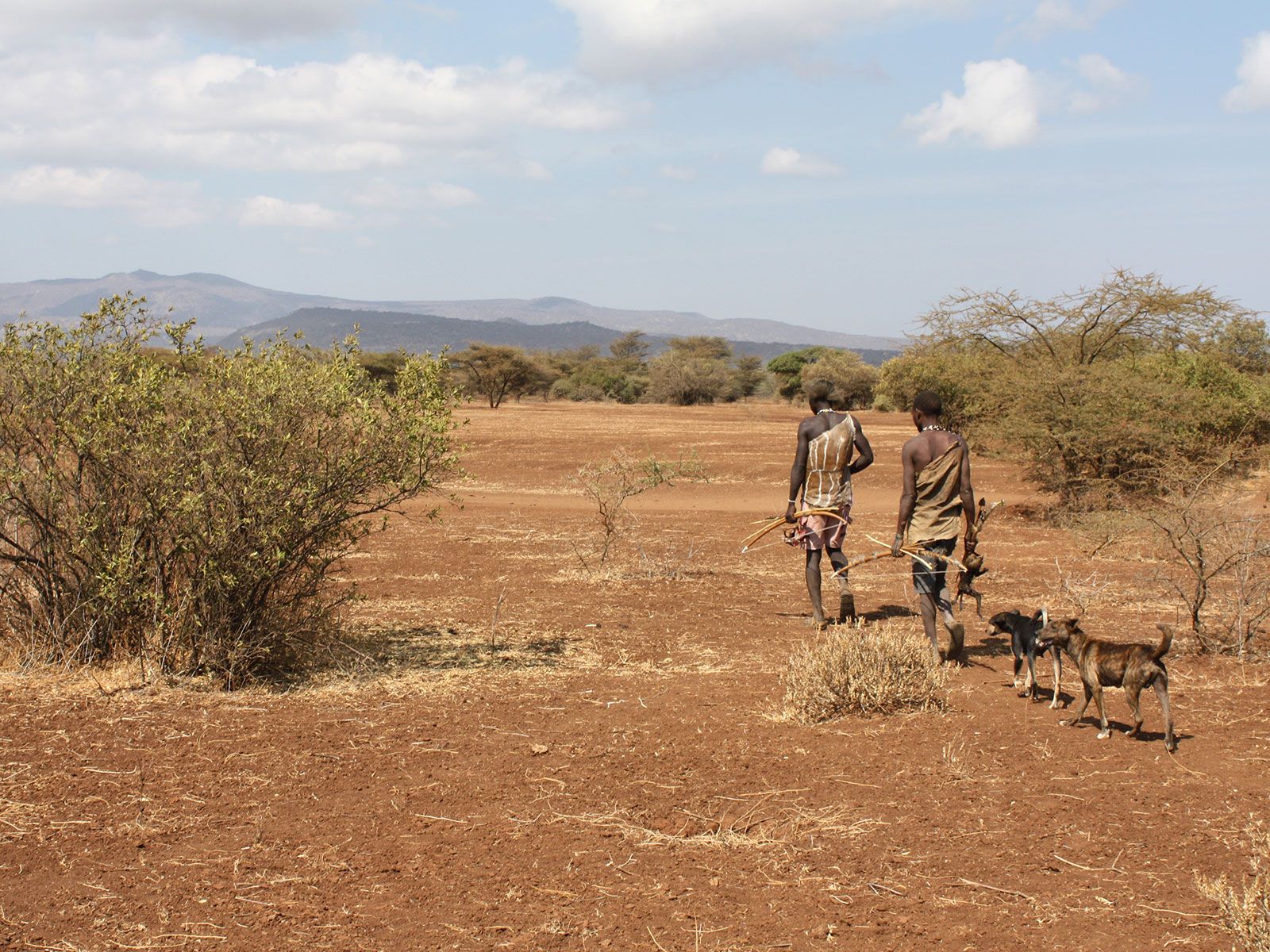 The Hadza are a community of a few hundred traditional hunter-gatherers in northern Tanzania. They live in a sort of semi-arid savanna landscape. Some of the population has started to do some farming or to live in villages. But a quarter of them are still hunting and gathering and get all their food from wild game and plants. Men hunt with bow and arrow, and women gather plant foods by hand or with digging sticks. They are this really wonderful community of folks to work with, but they’re also really valuable in terms of giving us a snapshot of what hunting and gathering really looks like, day to day, in real life.